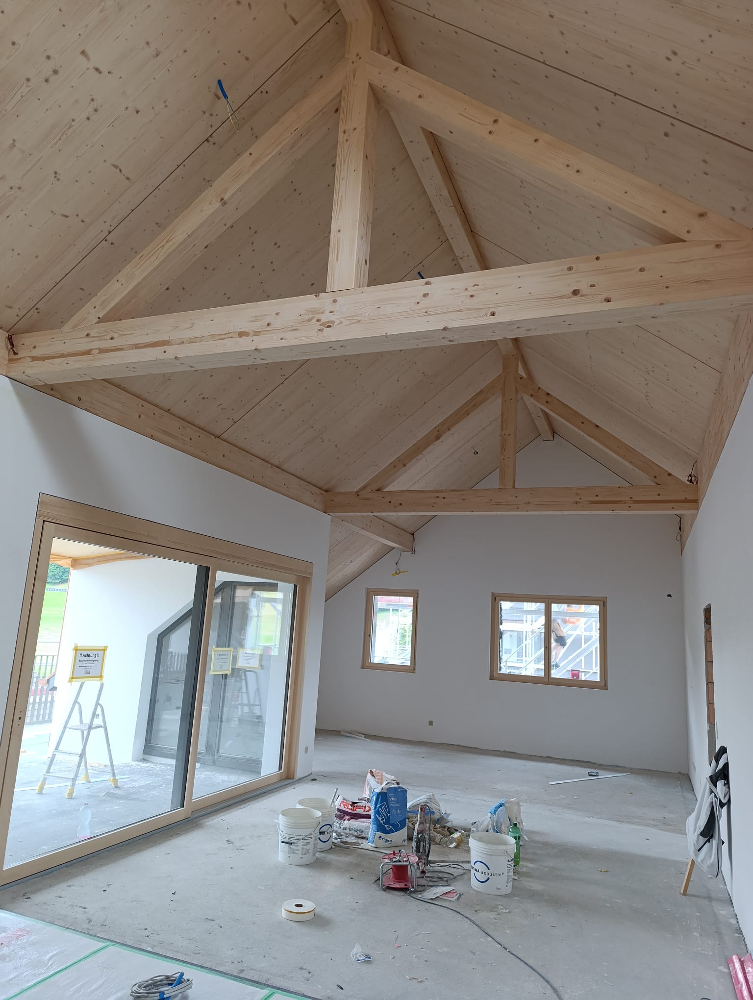 Ein weiterer Zweig unserer Zimmerei ist der Holzelementbau. Die kürzere Bauzeit, die trockene Bauweise, der gute U-Wert sind einige Punkte, die unsere Kunden dazu bewegten, sich für einen Holzelementbau zu entschliessen.